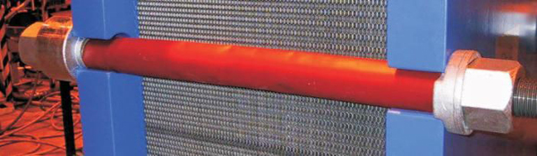 雷曼可拆式板式換熱器采用了精確的多點定位系統。角孔直徑100mm以下型號的四角定位系統,讓板片以上下導桿為軸心精確嵌合在一起。角孔直徑150mm以上型號的五點定位系統,讓板片的定位是以多個金屬與金屬接觸點而確定,其中上導桿的接觸點,可以防止板片上下移動,下導桿的接觸點可限制板片不會左右移動。采用多點定位技術,讓板片組既可以在導桿上沒有阻力的前后移動,輕松簡單的完成維護作業,又可以在復裝時讓板片精確嵌合,讓墊片密封準確,絲毫不差,板片組達到完全復位,從而保證了換熱器拆裝后壽命也耐久。而且具有多點定位系統的板式換熱器只需要一個人,即使沒有任何經驗,用簡單的工具就可輕易的拆裝換熱器。